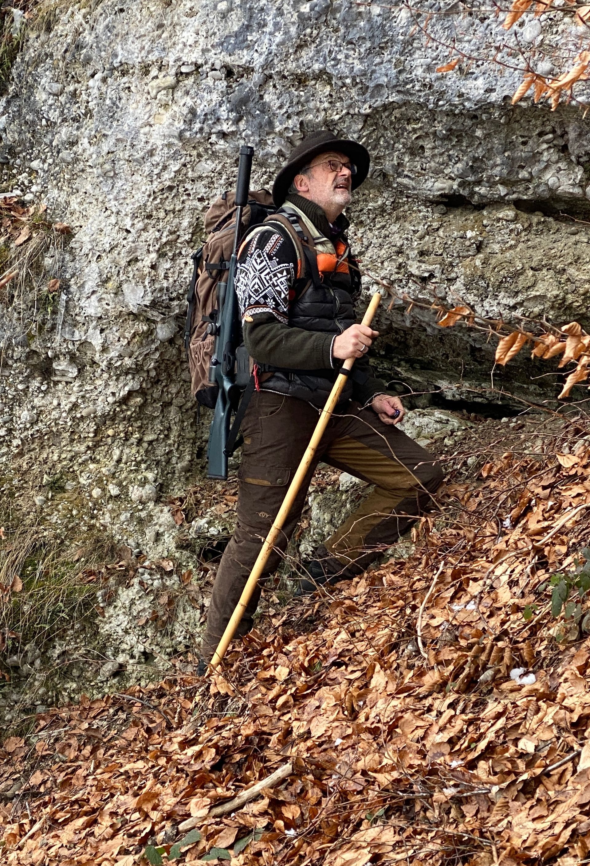 Durante la caza en montaña, se garantiza un movimiento seguro a través del terreno.