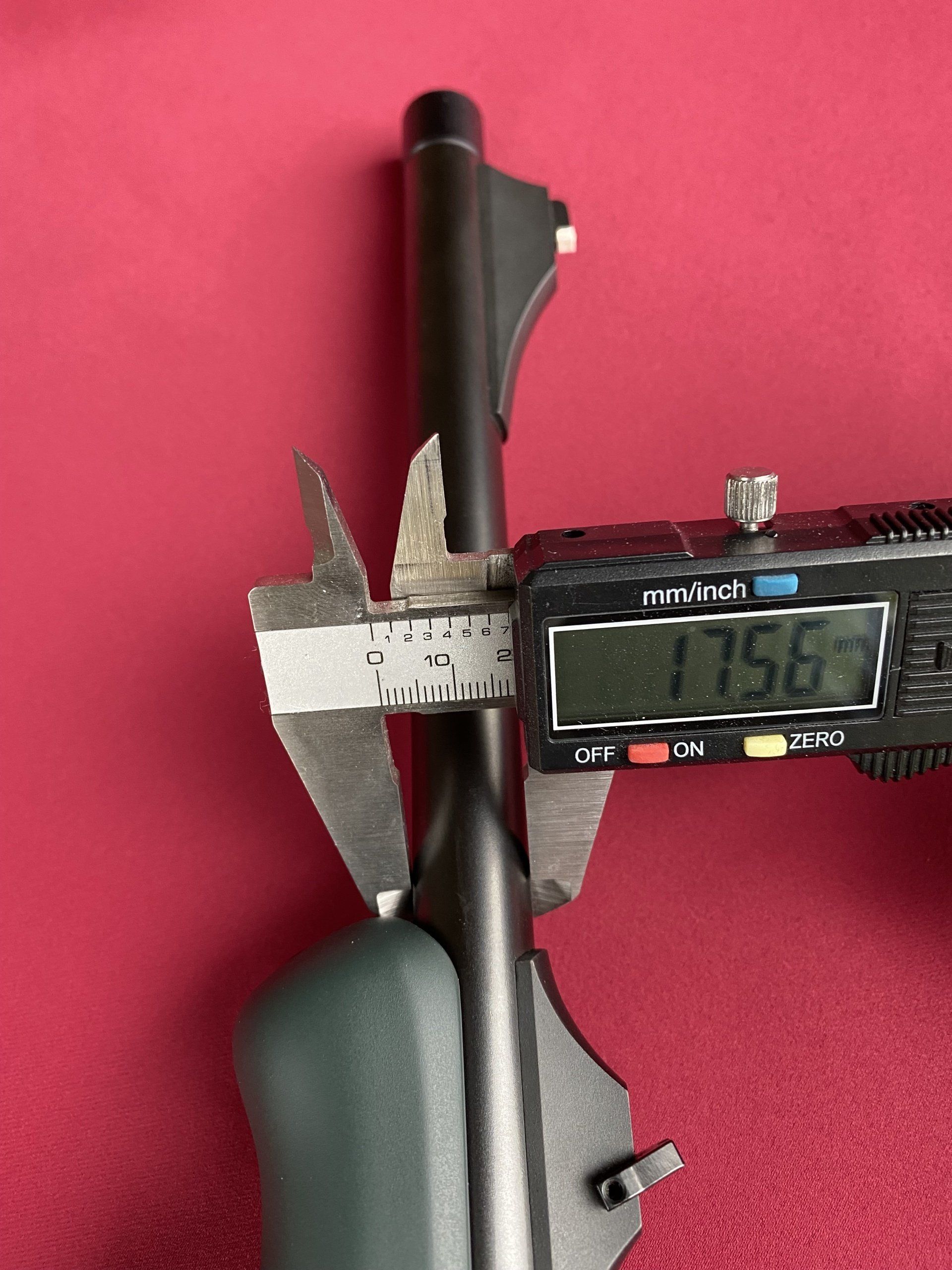 - Det finns inget fult, synligt eller märkbart monteringshål i greppfördjupningen på pistolgreppet, vilket är ganska vanligt hos vissa tillverkare! (se bild av greppfördjupningen)