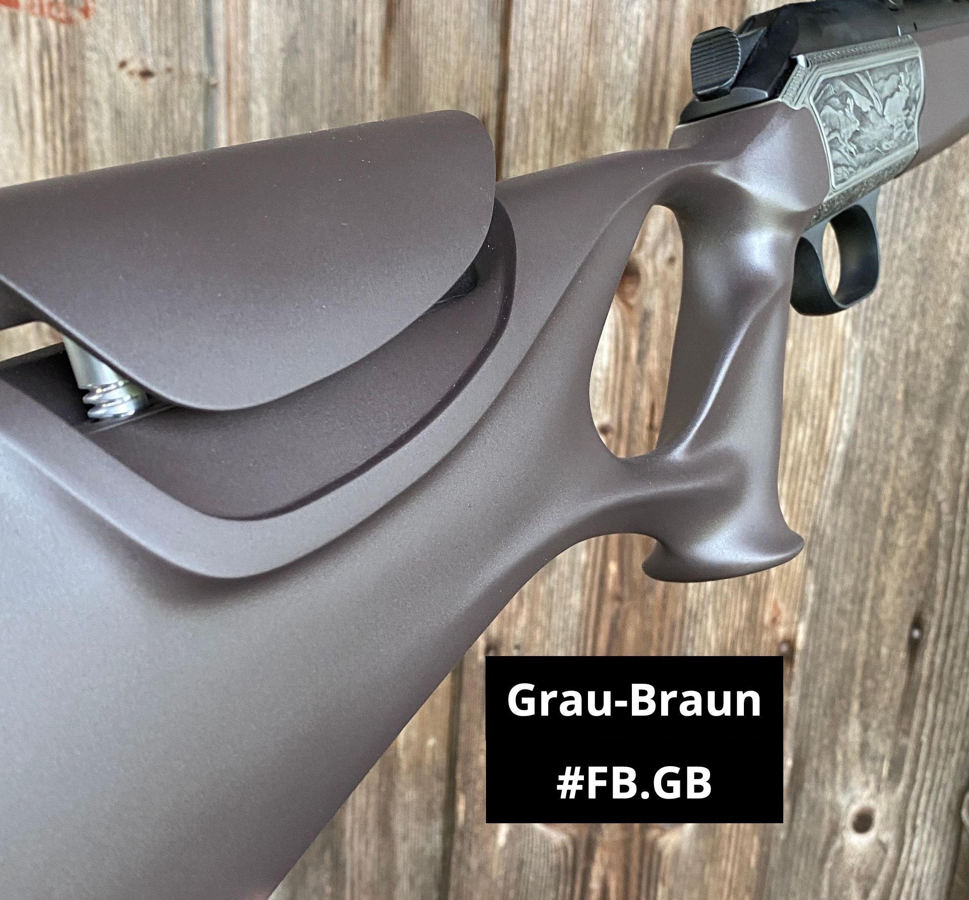 - Gråbrun/svart i greppområdet och kindstycket